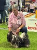 chien très solide, jolie t^te, bon prognatisme, jolie sortie d'encolure, patte AV droite légerement ouverte, bon arrière, TB angulé, bonne inserttion de queue, longueur et port, jolie couleur, noir soutenu, bonne qualité de fourrure, démarche classique